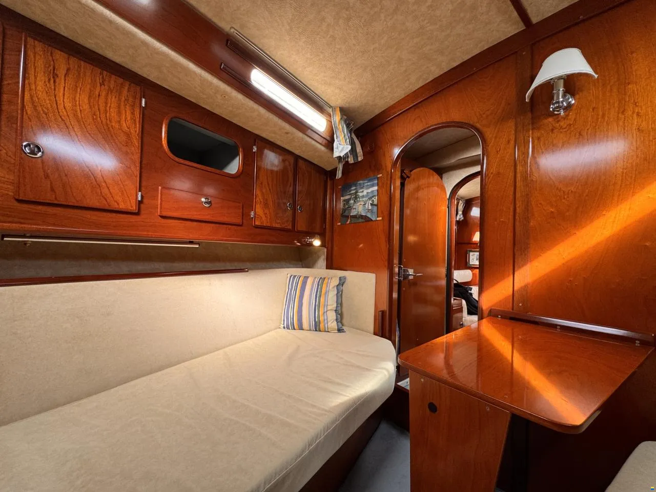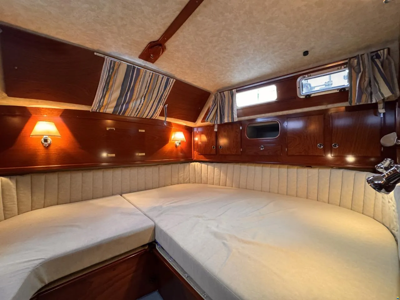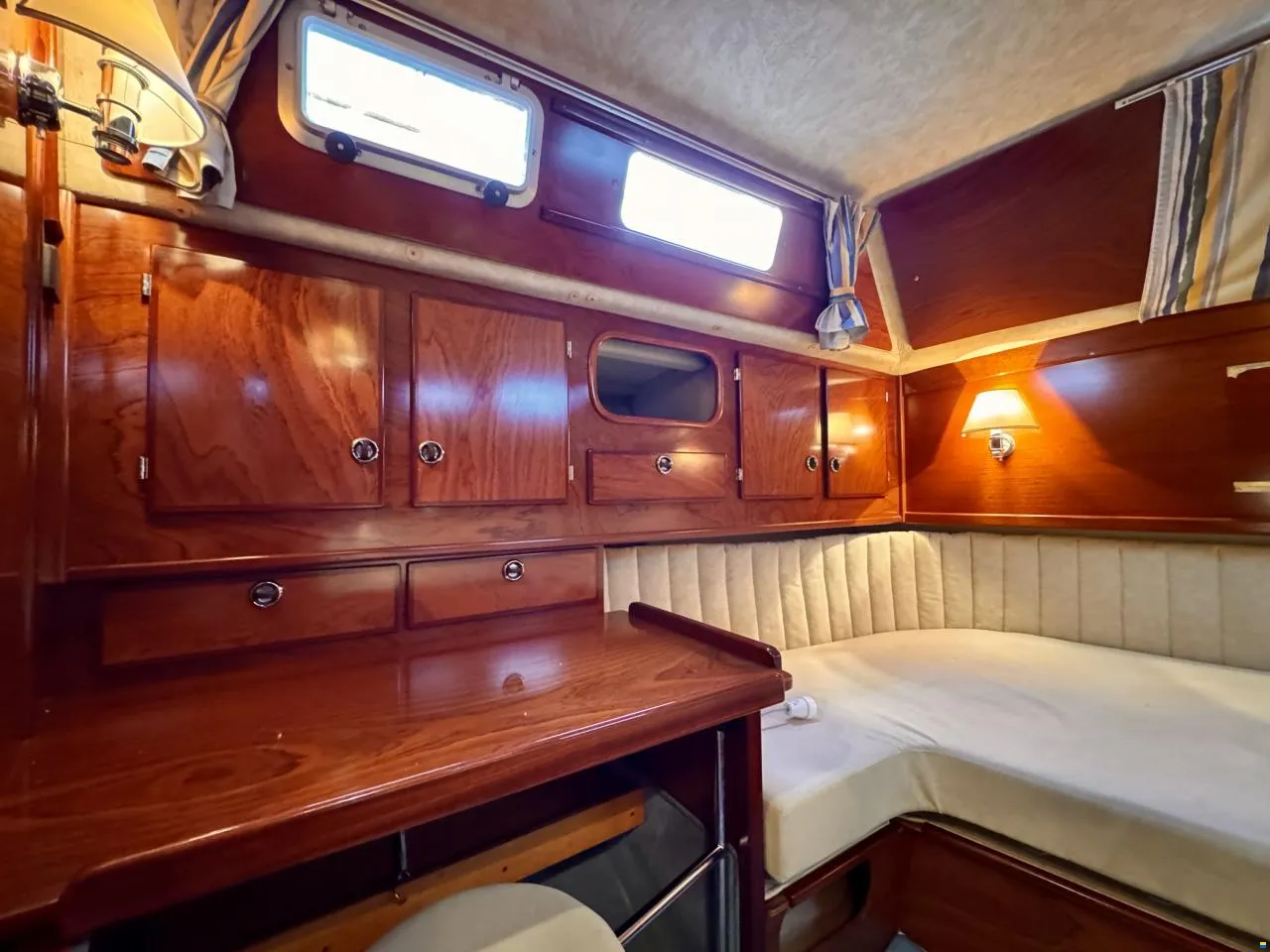 À bord, vous profitez d’un espace de vie spacieux et confortable avec 2 cabines, jusqu’à 7 couchages, 2 toilettes et 3 douches. La cabine arrière dispose d’un grand lit double avec rangement, offrant un confort optimal pour les longues traversées.