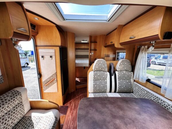Camping-car profilé T457 – Fiat Ducato 2.2L 140 CV – Année 2025 – 0 km – 5 couchages – 4 places carte grise – 7,39 m – Pack confort inclus – Réfrigérateur 156L – Lit pavillon Clima-Plux – Réservoir isolé – Garantie 2 ans + 7 ans étanchéité.