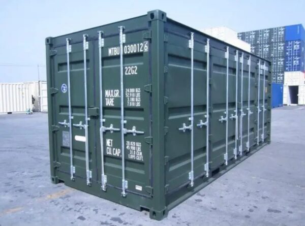 Deux doubles portes rabattables s’ouvrent sur toute la longueur du conteneur, offrant un accès latéral total. Parfait pour les objets longs, palettes, ou aménagements spécifiques.